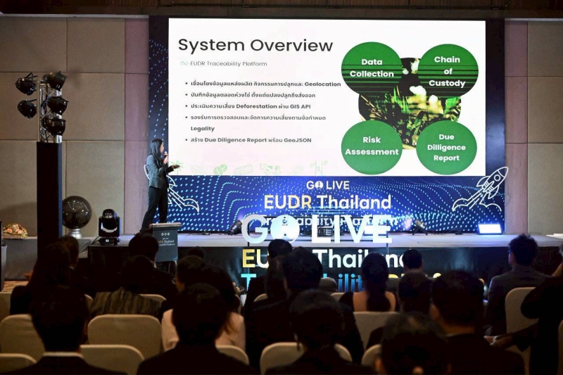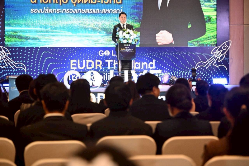 รองปลัดกระทรวงเกษตรและสหกรณ์ กล่าวว่า จากรายงานของ FAO และ UNEP (2020) ระบุว่าโลกสูญเสียพื้นที่ป่ากว่า 10 ล้านเฮกตาร์ต่อปี ในช่วงปี 2015–2020 รวมกว่า 80 ล้านเฮกตาร์ นับตั้งแต่ปี 1990 สหภาพยุโรปจึงออกกฎ EUDR กำหนดให้สินค้าที่นำเข้า EU ต้องพิสูจน์ได้ว่าไม่เกี่ยวข้องกับการตัดไม้ทำลายป่า และมีพิกัดแปลงผลิตที่ตรวจสอบย้อนกลับได้ รวมถึงต้องปฏิบัติตามกฎหมายประเทศต้นทางอย่างถูกต้อง แม้ไทยถูกจัดอยู่ในกลุ่มประเทศความเสี่ยงต่ำ แต่การปฏิบัติตามข้อกำหนดยังเป็นความท้าทายของผู้ประกอบการ SMEs และเกษตรกรรายย่อย โดยเฉพาะสินค้าเกษตร 7 กลุ่มหลัก ได้แก่ ยางพารา ปาล์มน้ำมัน วัว ไม้ กาแฟ โกโก้ และถั่วเหลือง ซึ่งไทยส่งออกไปยังสหภาพยุโรปมูลค่ากว่า 1.85 พันล้านดอลลาร์สหรัฐต่อปี (ราว 6.49 หมื่นล้านบาท) ดังนั้น การพัฒนาเครื่องมือเพื่อสร้างระบบรองรับในระดับประเทศจึงเป็นกลไกสำคัญที่ช่วยให้ไทยปรับตัวทันต่อกติกาโลกใหม่ และแสดงความรับผิดชอบต่อสิ่งแวดล้อมในทุกขั้นตอนตลอดห่วงโซ่อุปทาน