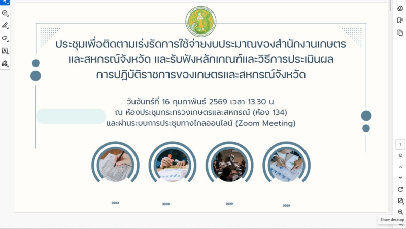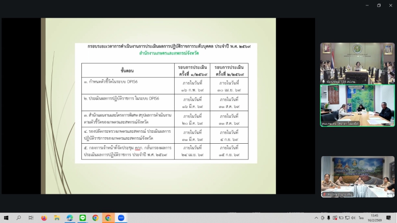 1. การชี้แจงหลักเกณฑ์และวิธีการประเมินผลการปฏิบัติราชการของเกษตรและสหกรณ์จังหวัด ประจำปี งบประมาณ พ.ศ. 2569 (โดย กองการเจ้าหน้าที่)