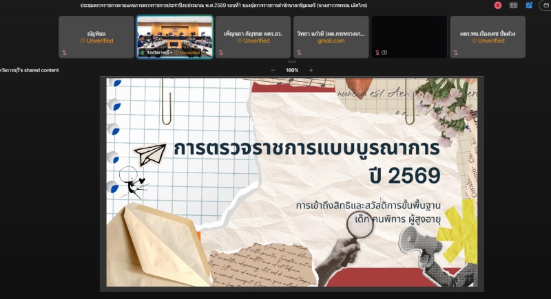 วันพฤหัสบดีที่ 19 กุมภาพันธ์ 2569 นายวิทยา แก้วมี ผู้ตรวจราชการกระทรวงเกษตรและสหกรณ์ เขตตรวจราชการที่ 3 เข้าร่วมประชุมการติดตามงานตามแผนการตรวจราชการแบบบูรณาการฯ ประจำปีงบประมาณ พ.ศ 2569 รอบที่ 1 ผ่านระบบออนไลน์ (Zoom Meeting) โดยประชุมร่วมกับจังหวัดและหน่วยงานที่เกี่ยวข้อง โดยมี นางสาววรพรรณ เลิศไกร ผู้ตรวจราชการสำนักนายกรัฐมนตรี เขตตรวจราชการที่ 3 เป็นประธาน มีประเด็นการตรวจราชการตามแผนการตรวจราชการแบบบูรณาการ 3 ประเด็น 1 การป้องกัน ปราบปราม และแก้ไขปัญหายาเสพติด 2 การยกระดับการท่องเที่ยวเพื่อสร้างรายได้ และ 3 การเข้าถึงสิทธิ์และสวัสดิการขั้นพื้นฐานของประชาชนกลุ่มเป้าหมาย เด็ก คนพิการ และผู้สูงอายุ