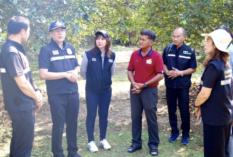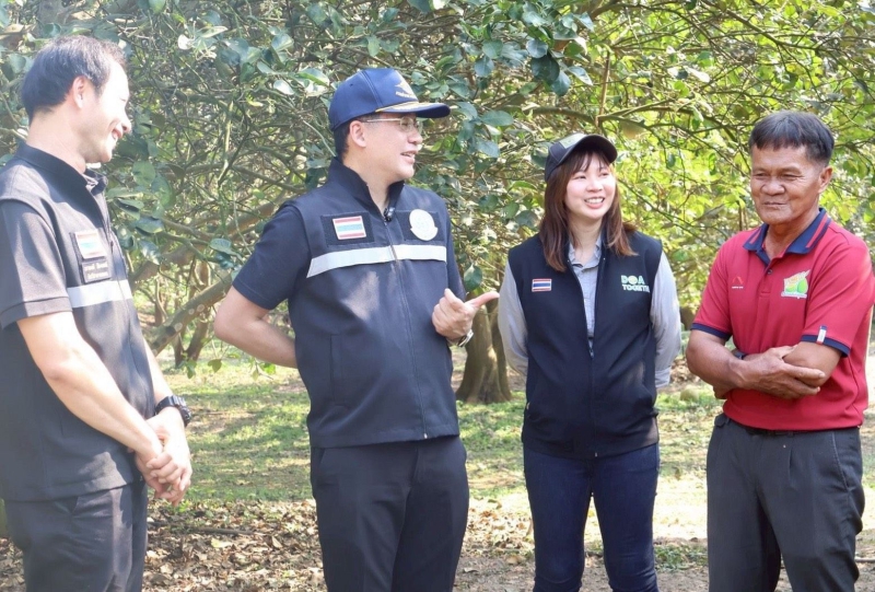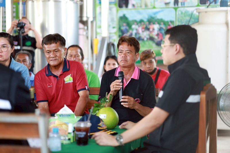 จากนั้น เวลา 13.30 น. ดร.พงศ์ไท ไทโยธิน ลงพื้นที่เยี่ยมชมแหล่งผลิตสินค้า GI "ส้มโอท่าข่อยเมืองพิจิตร" ณ วิสาหกิจชุมชนอนุรักษ์พัฒนาและแปรรูปส้มโอท่าข่อย สวนส้มโอลุงแล ตำบลโพธิ์ประทับช้าง อำเภอโพธิ์ประทับช้าง จังหวัดพิจิตร เพื่อติดตามผลการดำเนินงาน รับฟังปัญหา/อุปสรรค และให้ข้อเสนอแนะในการดำเนินงาน โดยมีนางสาวอุไรรัตน์ คำชื่นวงค์ เกษตรและสหกรณ์จังหวัดพิจิตร พร้อมด้วยผู้ช่วยผู้ตรวจราชการกระทรวงเกษตรและสหกรณ์ (ระดับกรม) หัวหน้าส่วนราชการสังกัดกระทรวงเกษตรและสหกรณ์ที่เกี่ยวข้อง ร่วมลงพื้นที่ โดยมีนายแล โพธิ์วัด ประธานวิสาหกิจชุมชนอนุรักษ์และพัฒนาและแปรรูปส้มโอท่าข่อย เป็นผู้ให้ข้อมูลและนำเยี่ยมชมแปลง