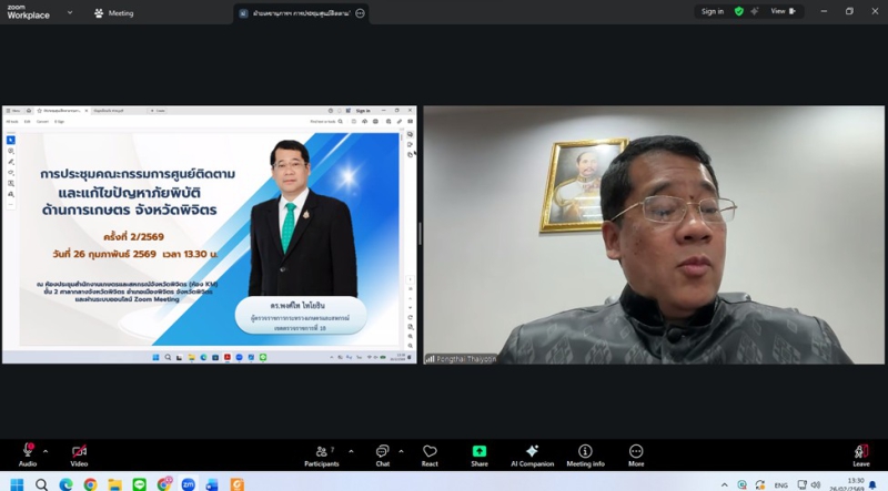 ผู้ตรวจราชการกระทรวงเกษตรและสหกรณ์ (ดร.พงศ์ไท ไทโยธิน) ประชุมศูนย์ติดตามและแก้ไขปัญหาภัยพิบัติด้านการเกษตร จังหวัดพิจิตร ครั้งที่ 2/2569