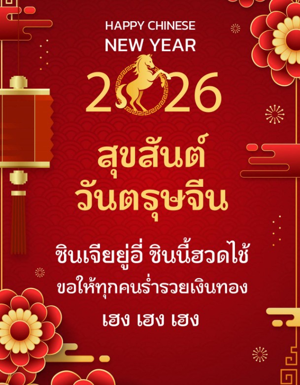 สุขสันต์วันตรุษจีน ซินเจียยู่อี่ ซินนี้ฮวดไช้ ขอให้ปีใหม่จีนนี้ ชีวิตราบรื่นดังใจหวัง การงานก้าวหน้า ธุรกิจเจริญรุ่งเรือง เงินทองไหลมาไม่ขาดสาย สุขภาพแข็งแรง ครอบครัวอบอุ่น