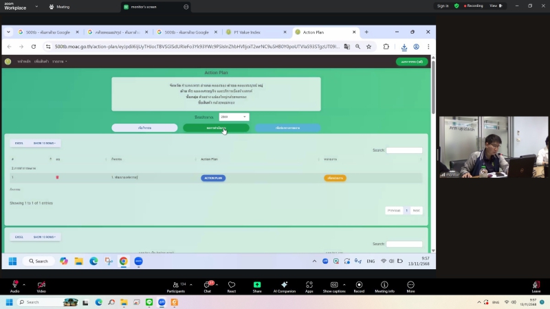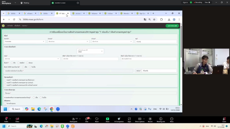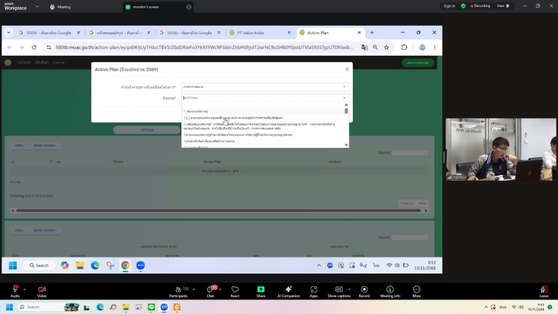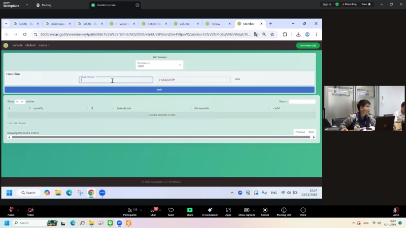 วันที่ 13 พฤศจิกายน 2568 เวลา 09.30 น. นางสาวจิราพา รักษาภักดี นักวิเคราะห์นโยบายและแผนชำนาญการพิเศษ รักษาราชการแทนเกษตรและสหกรณ์จังหวัดหนองบัวลำภู มอบหมายให้ นางสาวสุภวรรณ จีนชัยภูมิ เจ้าหน้าที่วิเคราะห์นโยบายและแผน ร่วมประชุมชี้แจงการใช้ระบบบันทึกข้อมูล 500tb.moac.go.th ผ่านระบบประชุมทางไกลออนไลน์ โดยมี นายสัญชัย รัศมีจีรวิไล ผู้อำนวยการศูนย์เทคโนโลยีสารสนเทศและการสื่อสาร สำนักงานปลัดกระทรวงเกษตรและสหกรณ์ เป็นประธาน