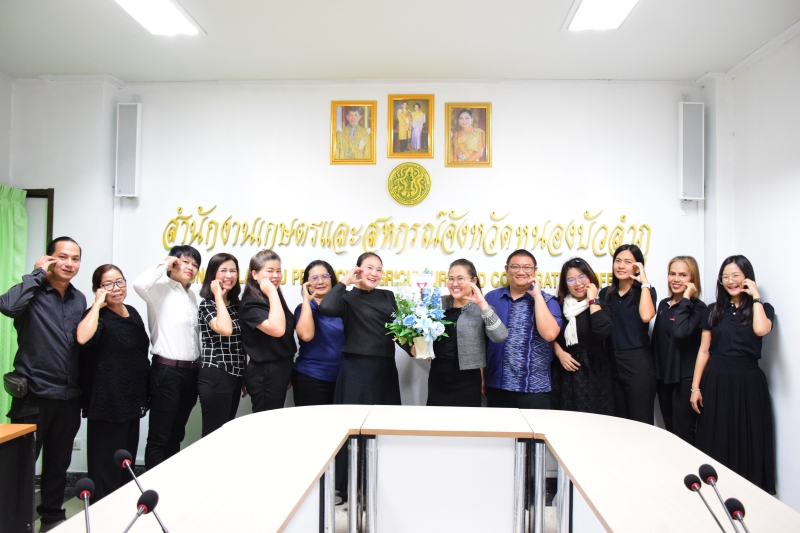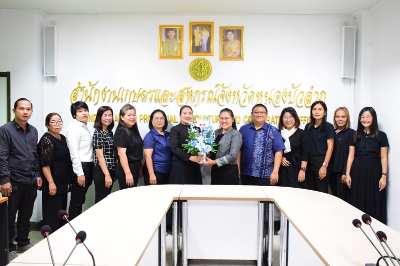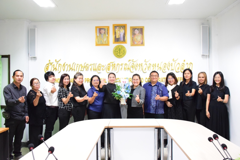 วันที่ 18 พฤศจิกายน 2568 เวลา 09.09 น. หัวหน้ากลุ่ม/ฝ่าย และเจ้าหน้าที่ สำนักงานเกษตรและสหกรณ์จังหวัดหนองบัวลำภู มอบช่อดอกไม้แสดงความยินดีและให้การต้อนรับ นางสาวทิพย์วรรณ อรุณศรี เนื่องในโอกาศมารับตำแหน่ง (เกษตรและสหกรณ์จังหวัดหนองบัวลำภู) ณ ห้องประชุมบัวหลวง สำนักงานเกษตรและสหกรณ์จังหวัดหนองบัวลำภู ชั้น 3 ศาลากลางจังหวัดหนองบัวลำภู