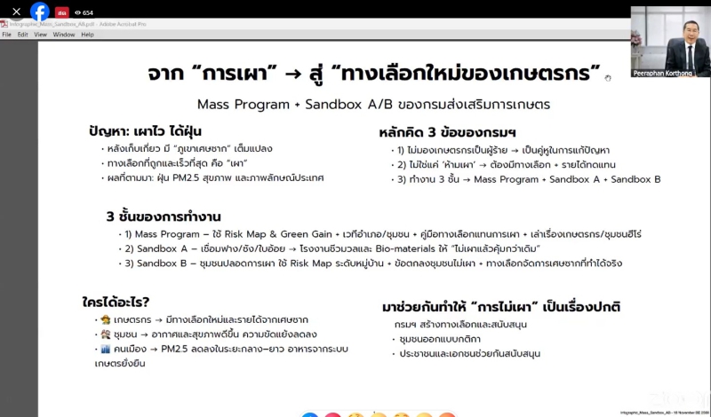 วันที่ 18 พฤศจิกายน 2568 เวลา 09.00 น. นางสาวทิพย์วรรณ อรุณศรี เกษตรและสหกรณ์จังหวัดหนองบัวลำภู พร้อมด้วย หัวหน้ากลุ่ม/ฝ่าย รับชม Live รายการ "อัปเดต เกษตรนำ“เรื่อง : สถานการณ์และการเตรียมความพร้อมรับมือปัญหาหมอกควันฝุ่นละออง PM 2.5 และมาตรการลดเผาในพื้นที่เกษตร โดย นายพีรพันธ์ คอทอง อธิบดีกรมส่งเสริมการเกษตร นายราเชน ศิลปะรายะ อธิบดีกรมฝนหลวงและการบินเกษตร ณ สำนักงานเกษตรและสหกรณ์จังหวัดหนองบัวลำภู ชั้น 3 ศาลากลางจังหวัดหนองบัวลำภู