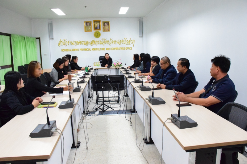 วันที่ 21 พฤศจิกายน 2568 เวลา 10.30 น. หัวหน้ากลุ่ม/ฝ่าย และเจ้าหน้าที่ ร่วมต้อนรับและนำเสนองานของแต่ละกลุ่ม/ฝ่าย ที่กำลังดำเนินการและดำเนินแล้วเสร็จ ให้กับ นางสาวทิพย์วรรณ อรุณศรี เกษตรและสหกรณ์จังหวัดหนองบัวลำภู รับทราบ เนื่องในโอกาสมารับตำแหน่ง เกษตรและสหกรณ์จังหวัดหนองบัวลำภู คนใหม่ ณ ห้องประชุมบัวหลวง สำนักงานเกษตรและสหกรณ์จังหวัดหนองบัวลำภู ชั้น 3 ศาลากลางจังหวัดหนองบัวลำภู