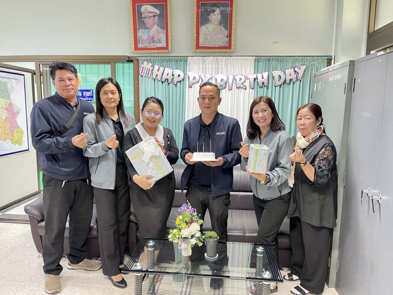 วันที่ 28 พฤศจิกายน 2568 นางสาวทิพย์วรรณ อรุณศรี เกษตรและสหกรณ์จังหวัดหนองบัวลำภู พร้อมด้วย หัวหน้ากลุ่ม/ฝ่าย และ เจ้าหน้าที่สำนักงานเกษตรและสหกรณ์จังหวัดหนองบัวลำภู ร่วมอวยพรวันเกิด นายสมิต สุภีคำ พนักงานขับรถ ซึ่งมีเดือนเกิดในเดือน พฤศจิกายน 2568 เพื่อเป็นขวัญและกำลังใจในการปฏิบัติงาน