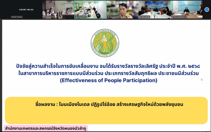 ประชุมเพื่อชี้แจ้งสร้างความรู้ความเข้าใจเกี่ยวกับแนวทางการสมัครและหลักเกณฑ์การพิจารณารางวัลเลิศรัฐให้แก่หน่วยงานในสังกัดสำนักงานปลัดกระทรวงเกษตรและสหกรณ์ทั้งส่วนกลางและส่วนภูมิภาค และเพื่อเป็นการเตรียมความพร้อมในการจัดส่งผลงานการสมัครขอรับรางวัลเลิศรัฐของสำนักงานปลัดกระทรวงเกษตรและสหกรณ์ ประจำปี พ.ศ.2569
