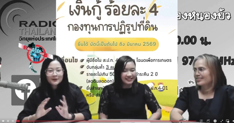 วันที่ 2 ธันวาคม 2568 เวลา 09.30 น. นางสาวจิราพา รักษาภักดี นักวิเคราะห์นโยบายและแผนชำนาญการพิเศษ รักษาราชการแทนเกษตรและสหกรณ์จังหวัดหนองบัวลำภู มอบหมายให้ นางสาวสุภาวรรณ บัวแก้ว นักวิเคราะห์นโยบายและแผนปฏิบัติการ และเจ้าหน้าที่ ร่วมกับสำนักงานการปฏิรูปที่ดินหนองบัวลำภู จัดรายการวิทยุรอบบ้านเมืองหนองบัว ประจำวันอังคารที่ 2 ธันวาคม พ.ศ. 2568 ณ สถานีวิทยุกระจายเสียงแห่งประเทศไทยจังหวัดหนองบัวลำภู นำสาระความรู้ด้านการเกษตร ดังนี้ 1.พยากรณ์อากาศ 7 วัน 2. ประชาสัมพันธ์โครงการร้านอาหารวัตถุดิบปลอดภัย เลือกใช้สินค้า Q (Q Restaurant) ประจำปีงบประมาณ พ.ศ. 2569 3. ประชาสัมพันธ์โครงการส่งเสริมการเปลี่ยนเมล็ดพันธุ์ข้าว ปี 2569 4. การโอนสิทธิ -มรดกสิทธิ 5. การแจ้งออกโฉนด 6. การแจ้งซื้อขายที่ดิน สปก 7.การปล่อยสินเชื่อกองทุน สปก.