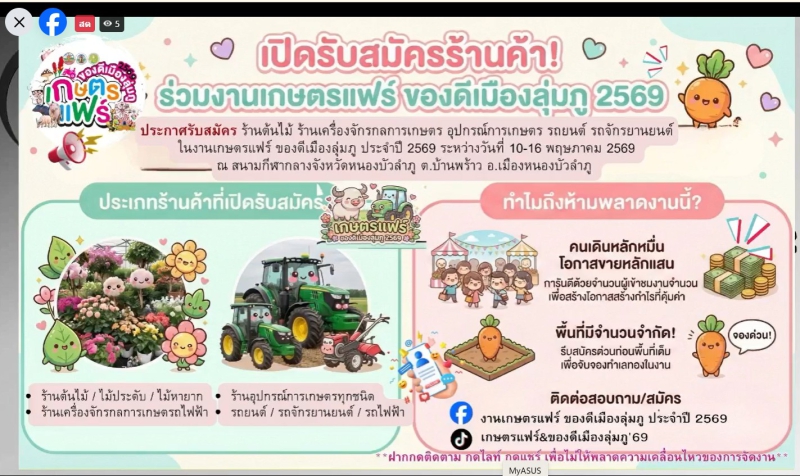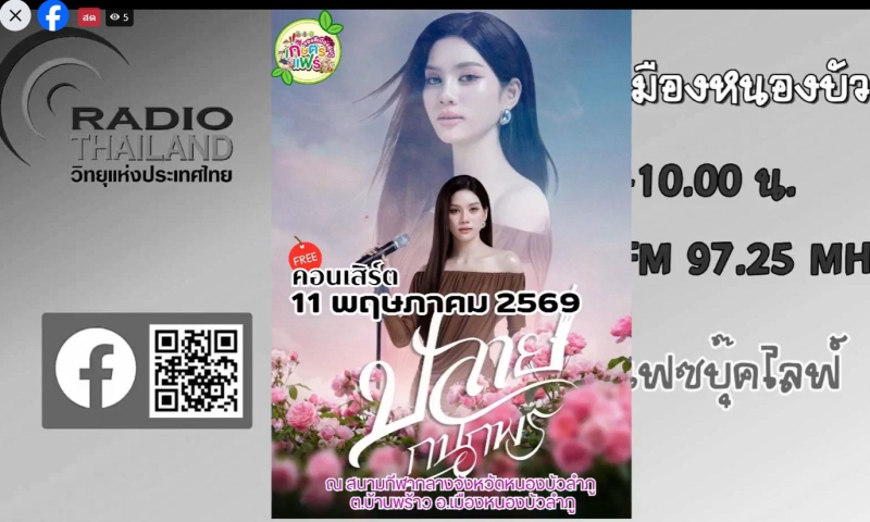 วันที่ 7 เมษายน 2569 เวลา 09.30 น. นางสาวทิพย์วรรณ อรุณศรี เกษตรและสหกรณ์จังหวัดหนองบัวลำภู มอบหมายให้ นางสาวฐานิกา บุญอาจ หัวหน้ากลุ่มสารสนเทศการเกษตร จัดรายการวิทยุรอบบ้านเมืองหนองบัว ประจำวันอังคารที่ 7 เมษายน พ.ศ. 2569 ณ สถานีวิทยุกระจายเสียงแห่งประเทศไทยจังหวัดหนองบัวลำภู นำสาระความรู้ด้านการเกษตร ดังนี้ 1.พยากรณ์อากาศ 2.ภารกิจการส่งเสริมจัดทำบัญชีของสหกรณ์ /เกษตรกร 3.ประชาสัมพันธ์การจัดงานเกษตรแฟร์ ประจำปีงบประมาณ พ.ศ. 2569 ซึ่งจัดขึ้นระหว่างวันที่ 10 –16 พฤษภาคม พ.ศ. 2569