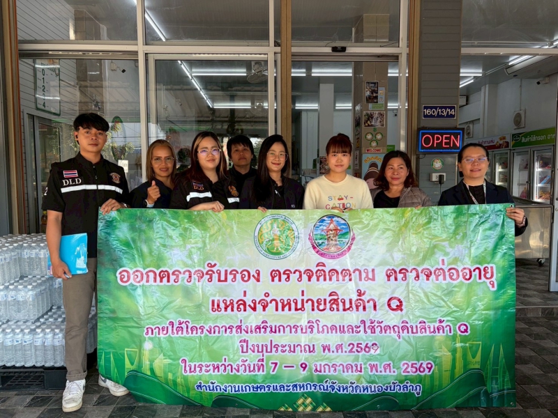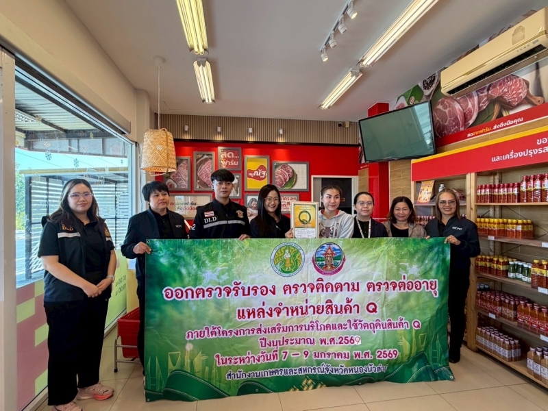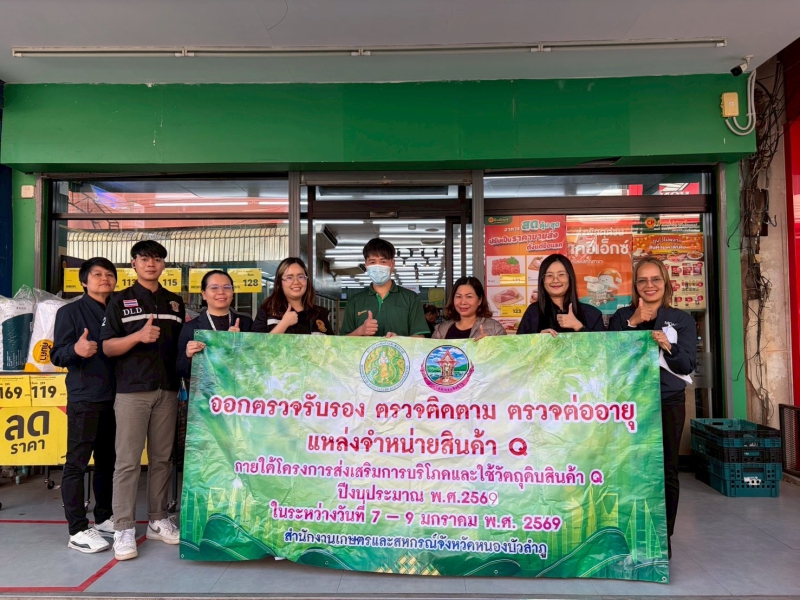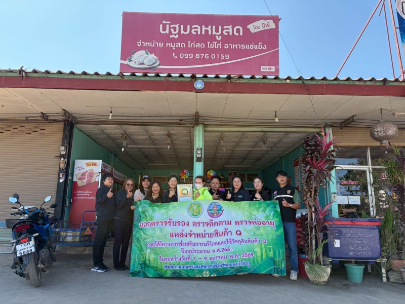วันที่ 9 มกราคม 2569 เวลา 08.30 น. นางสาวทิพย์วรรณ อรุณศรี เกษตรและสหกรณ์จังหวัดหนองบัวลำภู มอบหมายให้ นางสาวถวิล ศรชัย เจ้าหน้าที่วิเคราะห์นโยบายและแผน พร้อมด้วย คณะทำงานตรวจรับรอง ตรวจติดตาม ตรวจต่ออายุแหล่งจำหน่ายสินค้า Q ลงพื้นทีออกตรวจรับรอง ตรวจติดตาม ตรวจต่ออายุแหล่งจำหน่ายสินค้า Q ภายใต้โครงการร้านอาหารวัตถุดิบปลอดภัยเลือกใช้สินค้า Qของกระทรวงเกษตรและสหกรณ์ในพื้นที่จังหวัดหนองบัวลำภู ประจำปีงบประมาณ พ.ศ. 2569 เพื่อประชาสัมพันธ์ร้านอาหารที่มีชื่อเสียงและเป็นที่รู้จักของจังหวัดที่ใช้วัตถุดิบจากสินค้า Q ที่มีความปลอดภัยตามระบบการผลิต GAP เพื่อส่งเสริมแหล่งจำหน่าย และเพิ่มช่องทางการจำหน่ายให้แก่แหล่งผลิตสินค้าปลอดภัย หรือ สินค้า Q เพิ่มช่องทางการจำหน่ายสินค้าที่มีความปลอดภัย และสร้างแรงจูงใจให้ผู้ผลิตในการผลิตสินค้าที่มีความปลอดภัยมากขึ้น จัดขึ้นระหว่าง วันที่ 7-9 มกราคม พ.ศ. 2569 ณ พื้นที่ทั้ง 6 อำเภอของจังหวัดหนองบัวลำภู