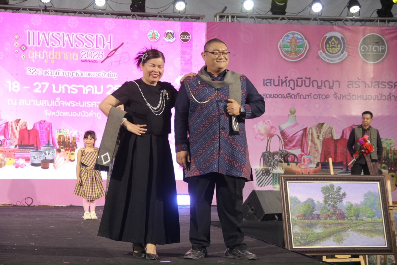 วันที่ 26 มกราคม พ.ศ. 2569 เวลา 09.30 น. นางสาวทิพย์วรรณ อรุณศรี เกษตรและสหกรณ์จังหวัดหนองบัวลำภู พร้อมด้วย หัวหน้ากลุ่ม และเจ้าหน้าที่ ร่วมการแสดงแฟชั่นโชว์กิตติมศักดิ์ กิจกรรม แพรพรรณลุ่มภูสู่สากล 2026 “งานแพรพรรณลุ่มภูสู่สากล”ระดับจังหวัด โดยมี นายสุรศักดิ์ อักษรกุล ผู้ว่าราชการจังหวัดหนองบัวลำภู เป็นประธาน นายศศิน พัฒนภิรมย์ รองผู้ว่าราชการจังหวัดหนองบัวลำภู และ นายเสฏฐชัย ยุทธเศรษฐสิริ รองผู้ว่าราชการจังหวัดหนองบัวลำภู เข้าร่วม ณ เวทีกลาง สนามสมเด็จพระนเรศวรมหาราช จังหวัดหนองบัวลำภู