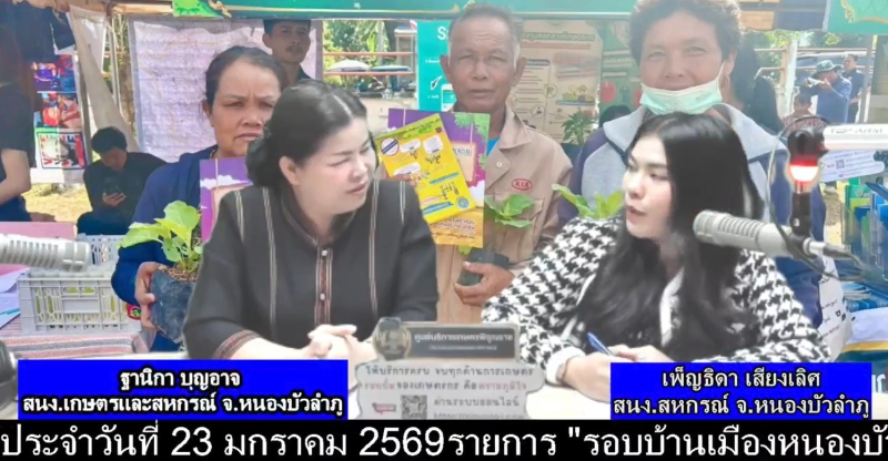 วันที่ 27 มกราคม 2569 เวลา 09.30 น. นางสาวทิพย์วรรณ อรุณศรี เกษตรและสหกรณ์จังหวัดหนองบัวลำภู มอบหมายให้ นางสาวฐานิกา บุญอาจ หัวหน้ากลุ่มสารสนเทศการเกษตร ร่วมกับ สำนักงานตรวจบัญชีสหกรณ์หนองบัวลำภู จัดรายการวิทยุรอบบ้านเมืองหนองบัว ประจำวันอังคารที่ 27 มกราคม พ.ศ. 2569 ณ สถานีวิทยุกระจายเสียงแห่งประเทศไทยจังหวัดหนองบัวลำภู นำสาระความรู้ด้านการเกษตร ดังนี้ 1. พยากรณ์อากาศเพื่อการเกษตร 7 วันข้างหน้า 2. แนะนำสำนักงาน/ แนะนำ ผู้อำนวยการสำนักงานตรวจบัญชีสหกรณ์หนองบัวลำภู เนื่องในโอกาสย้ายมาดำรงตำแหน่ง 3. นโยบาย/แผนงานโครงการ/ภารกิจสำคัญในปี 2569 4. app smart me 5.เชิญชวนร่วมงานสักการะสมเด็จพระนเรศวรมหาราช จังหวัดหนองบัวลำภู ประจำปี 2569