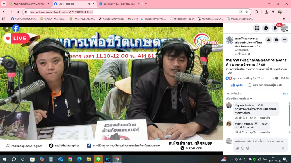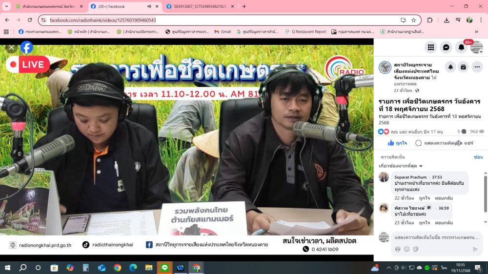 "เพื่อชีวิตเกษตรกร" ดำเนินรายการโดย สำนักงานเกษตรจังหวัดหนองคาย กรมส่งเสริมการเกษตร และสำนักงานการปฏิรูปที่ดินจังหวัดหนองคาย กระทรวงเกษตรและสหกรณ์
