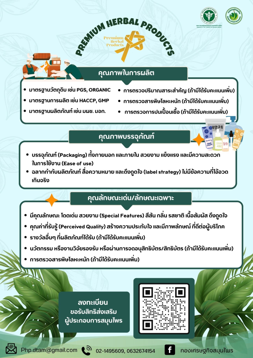 สำนักงานพาณิชย์จังหวัดหนองคาย ขอประชาสัมพันธ์ เชิญส่งผลิตภัณฑ์สมุนไพรคุณภาพเข้าคัดเลือกรางวัลผลิตภัณฑ์สมุนไพรคุณภาพ ครั้งที่ 1 ปี 2569 (Premium Herbal Products 2026 )