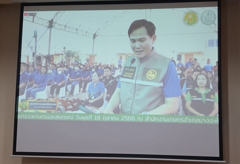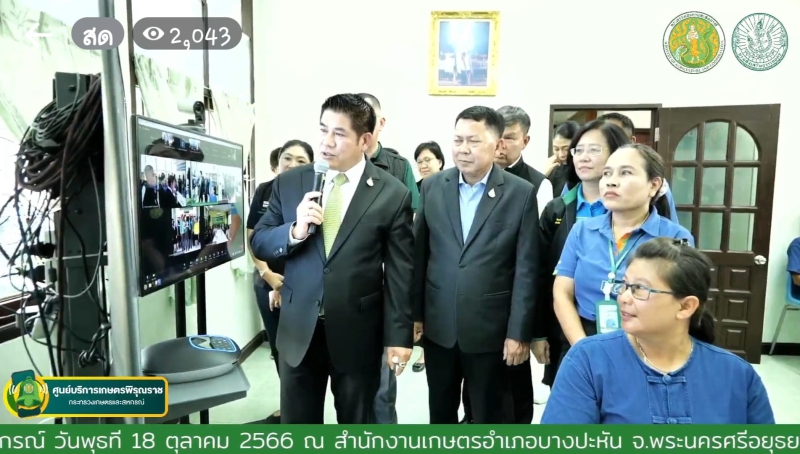 วันที่ 18 ตุลาคม 2566 เวลา 14.00 น. ณ สำนักงานเกษตรอำเภอบางปะหัน จ.พระนครศรีอยุธยา จัดพิธีเปิด “ศูนย์บริการเกษตรพิรุณราชของกระทรวงเกษตรและสหกรณ์” โดยมี ร้อยเอก ธรรมนัส พรหมเผ่า รัฐมนตรีว่าการกระทรวงเกษตรและสหกรณ์ เป็นประธานเปิดพิธี เพื่อขับเคลื่อนงานตามนโยบายกระทรวงเกษตรและสหกรณ์ ให้มีความชัดเจนและเป็นรูปธรรม สามารถแปลงนโยบายสร้างวิธีการทำงานสู่การปฏิบัติให้เป็นไปอย่างมีประสิทธิภาพเกิดผลสำเร็จตามเจตนารมณ์ที่กำหนดไว้ พร้อมนี้ศูนย์บริการหลักระดับอำเภอ สามารถให้บริการกับเกษตรกรได้เริ่มตั้งแต่วันที่ 18 ตุลาคม 2566 เป็นต้นไป พร้อมสาธิตการให้บริการกับเกษตรกร ผ่านช่องทางถ่ายทอดสดพร้อมกันทั่วประเทศทาง Facebook page: กระทรวงเกษตรและสหกรณ์ (MOACThailand) ในการนี้ หัวหน้าส่วนราชการ รักษาราชการแทนฯ ผู้แทน หน่วยงานสังกัดกระทรวงเกษตรและสหกรณ์ ได้รับชมการถ่ายทอดสดครั้งนี้โดยพร้อมเพรียงกัน ณ ห้องประชุมพระพิรุณ สำนักงานเกษตรและสหกรณ์จังหวัดหนองคาย ศาลากลางจังหวัดหนองคาย ชั้น 3
