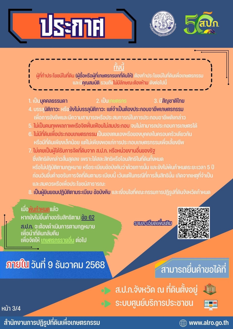 ประกาศ เกษตรกร ที่ได้รับการจัดที่ดินจาก ส.ป.ก.