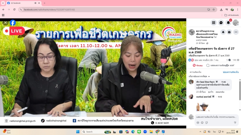 รายการเพื่อชีวิตเกษตรกร โดยสำนักงานเกษตรและสหกรณ์จังหวัดหนองคาย ประจำวันที่ 27 มกราคม 2569