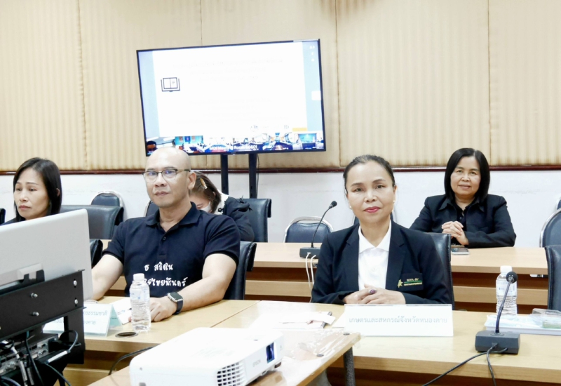 วันที่ 22 มกราคม 2569 เวลา 13.30 น. นางสุวรรณี ศิริวรรณ์หอม เกษตรและสหกรณ์จังหวัดหนองคาย พร้อมด้วยนางกนกวรรณ เหรียญทอง หัวหน้ากลุ่มยุทธศาสตร์พัฒนาการเกษตร ร่วมรับฟังการประชุมชี้แจงแนวทางการเพิ่มประสิทธิภาพการบริหารงานของจังหวัดแบบบูรณาการ ประจำปีงบประมาณ พ.ศ. 2569 ผ่านระบบวิดีทัศน์ทางไกล (VCS) ณ ห้องประชุมพระใส ศาลากลางจังหวัดหนองคาย ชั้น 2 อำเภอเมืองหนองคาย โดยระทรวงมหาดไทยและสำนักงานคณะกรรมการพัฒนาระบบราชการจัดประชุม เพื่อร่วมันขับเคลื่อนแนวทางการเพิ่มประสิทธิภาพการบริหารงานของจังหวัดแบบบูรณาการ ประจำปีงบประมาณ พ.ศ. 2569 โดยมี นายโชตินรินทร์ เกิดสม รองปลัดกระทรวงมหาดไทย เป็นประธานการประชุม