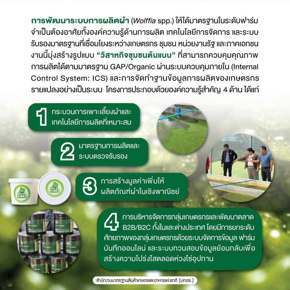การยกระดับมาตรฐานการผลิตผำ เพื่อพัฒนาเป็นแหล่งโปรตีนทางเลือกและก้าวสู่การเป็นอาหารแห่งอนาคตอย่างยั่งยืน