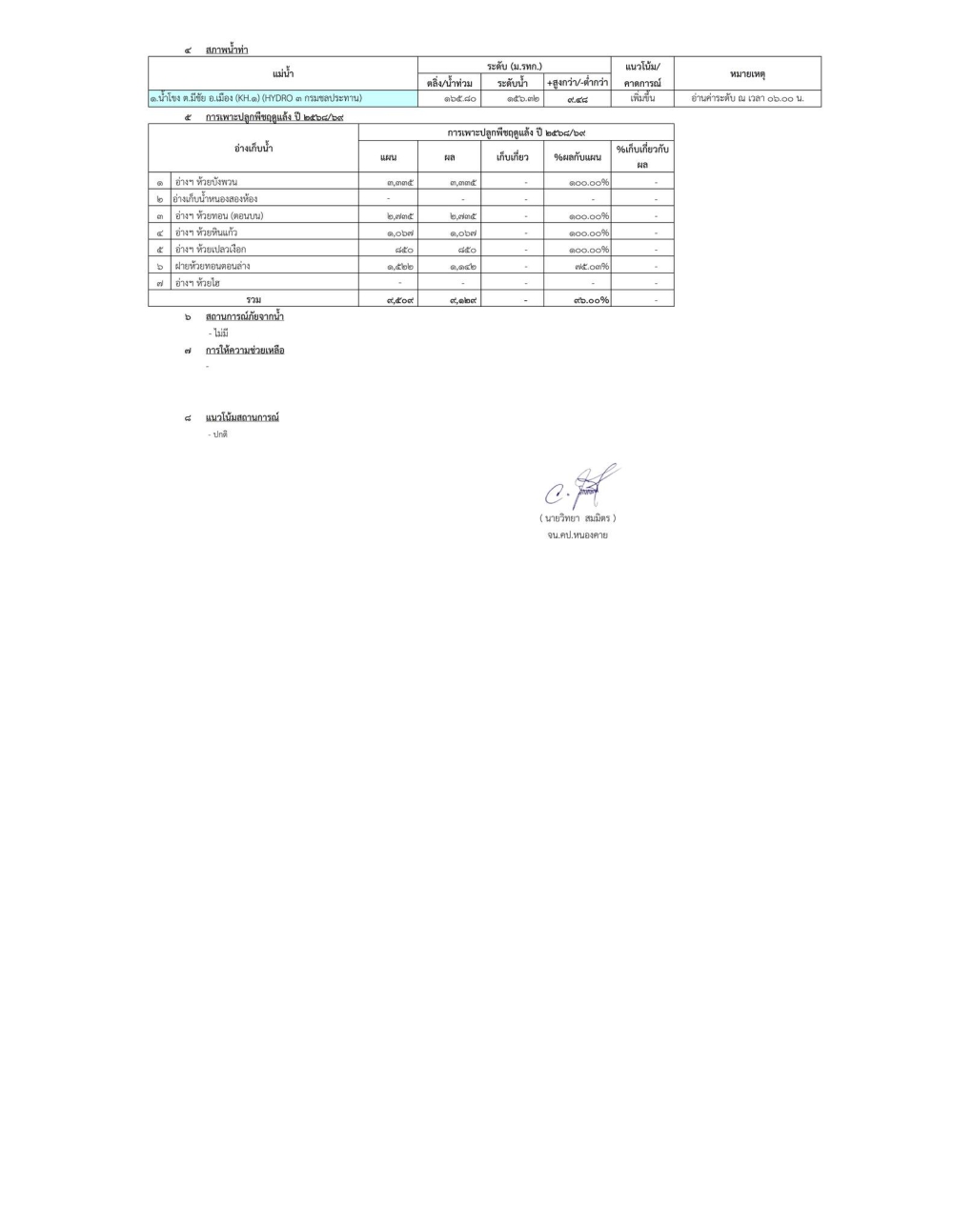 ( ฝ่ายจัดสรรน้ำและปรับปรุงระบบชลประทาน โครงการชลประทานหนองคาย รายงาน )