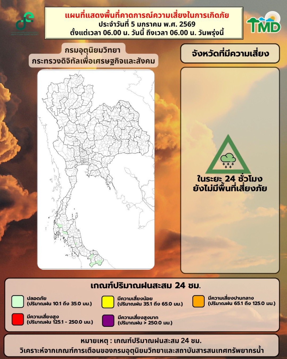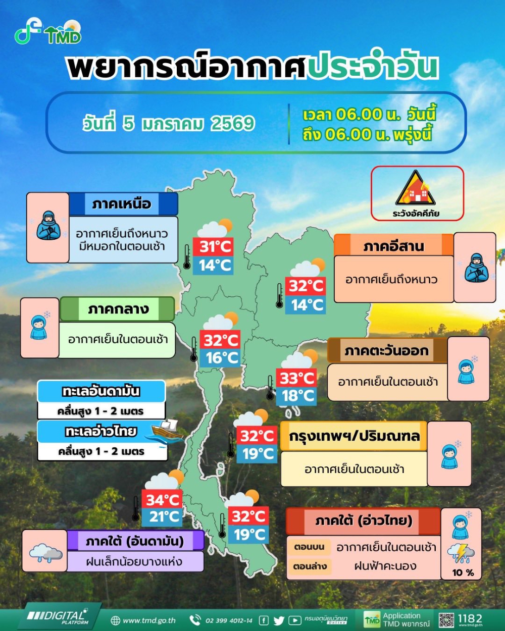 รายงานสภาพอากาศประจำวันที่ 5 มกราคม 2569