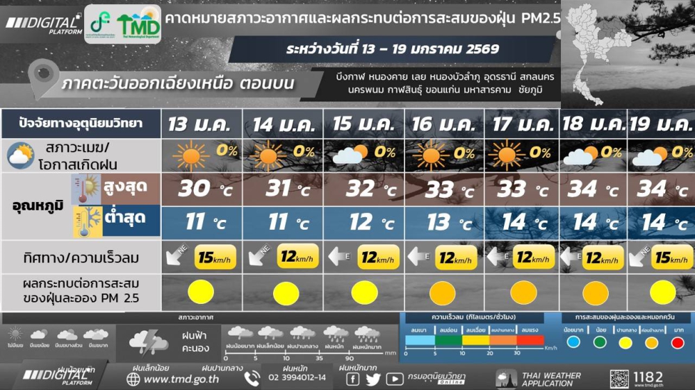 รายงานสภาพอากาศจังหวัดหนองคาย ประจำวันที่ 13 มกราคม 2569