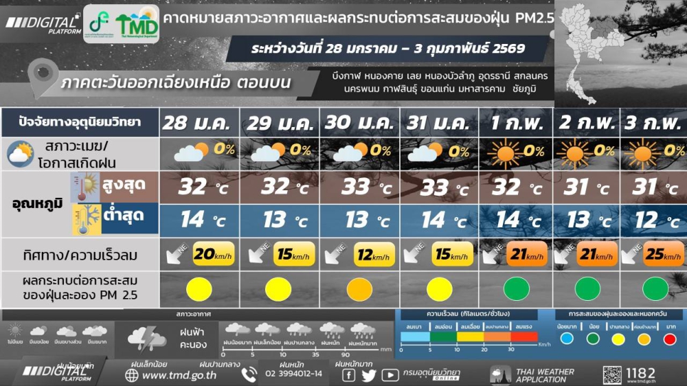 รายงานสภาพอากาศ ประจำวันที่ 28 มกราคม 2569จังหวัดหนองคาย อุณหภูมิต่ำสุดที่ 18 องศาเซลเซียส #สถานีอุตุนิยมวิทยาหนองคาย
