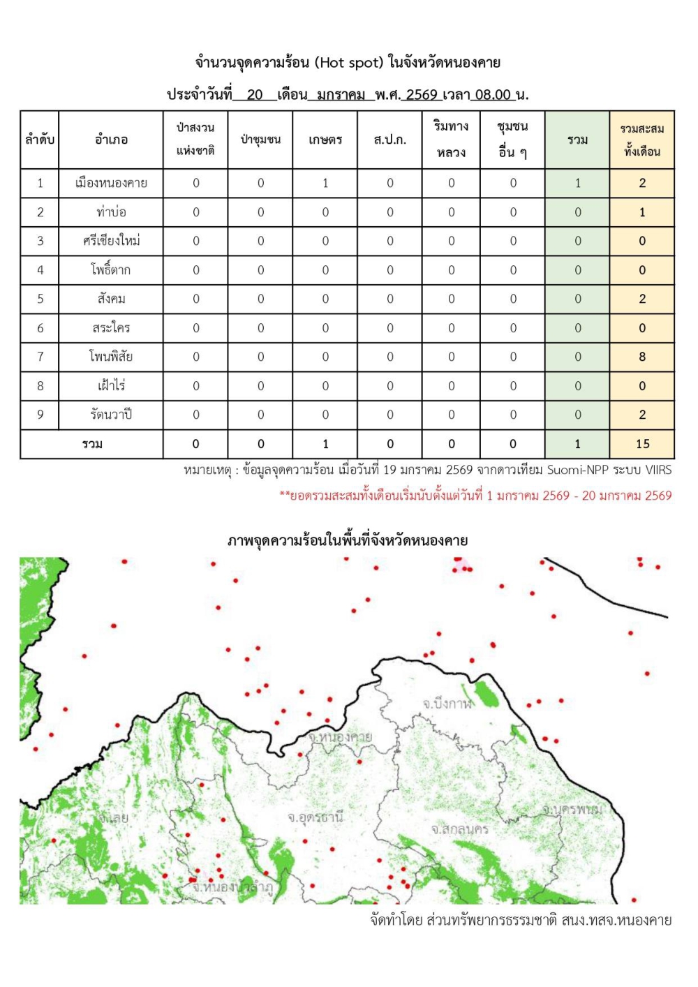 รายงานสถานการณ์คุณภาพอากาศ จังหวัดหนองคาย ประจำวันที่ 20 มกราคม 2569