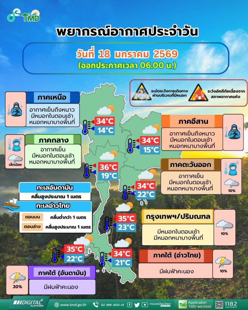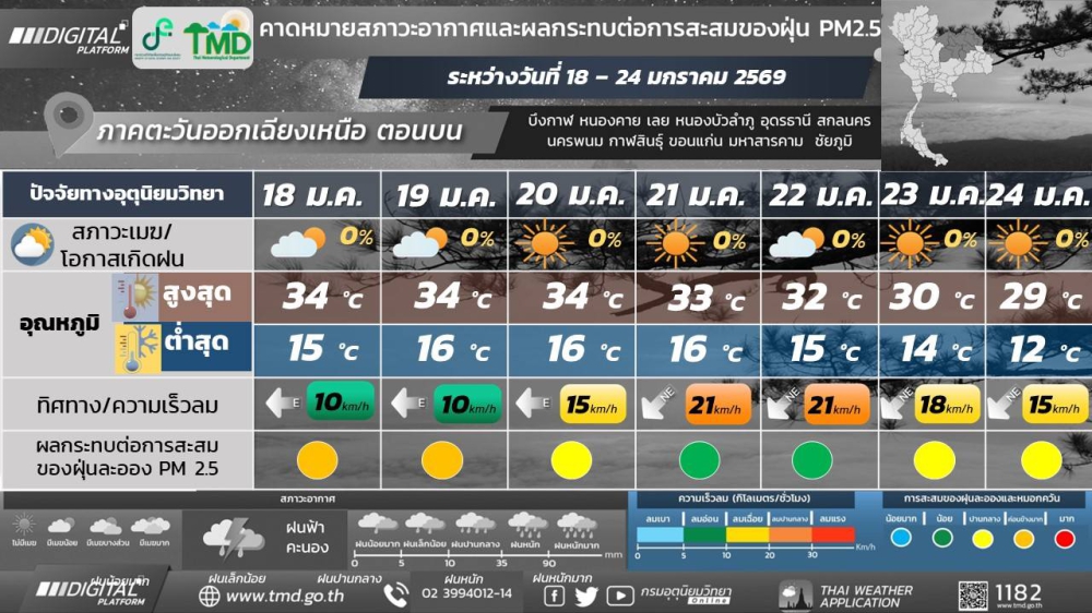 รายงานสถานการณ์คุณภาพอากาศ จังหวัดหนองคาย ประจำวันที่ 18 มกราคม 2569