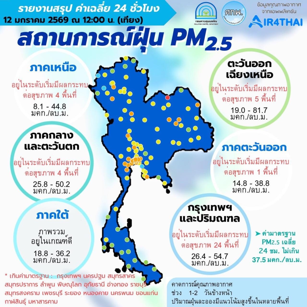 หนองคายค่าฝุ่นละอองพุ่งสูง กระทบต่อสุขภาพ เตือนประชาชนสวมหน้ากากอนามัยป้องกัน