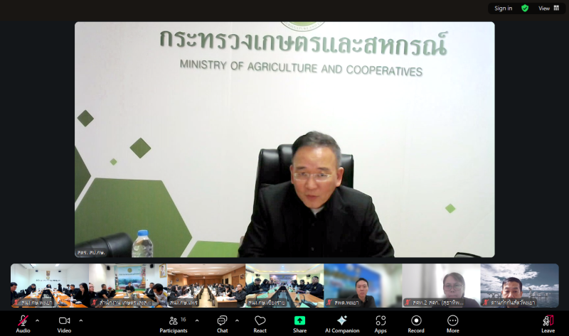 วันพุธที่ 19 พฤศจิกายน พ.ศ. 2568 ดร.พรเทพ ศรีธนาธร ผู้ตรวจราชการกระทรวงเกษตรและสหกรณ์ เขตตรวจราชการที่ 15 และ 16 เป็นประธานการประชุมหารือการตรวจราชการของผู้ตรวจราชการกระทรวงเกษตรและสหกรณ์ เขตตรวจราชการที่16 เวลา 09.30 น. ผ่านระบบประชุมออนไลน์ Application Zoom โดยมีเกษตรและสหกรณ์จังหวัดจังหวัดน่าน จังหวัดแพร่ จังหวัดพะเยา และ จังหวัดเชียงราย รวมทั้งหน่วยงานในสังกัดกระทรวงเกษตรและสหกรณ์ในพื้นที่เข้าร่วมประชุม โดยที่ประชุมฯรับทราบแผนการตรวจราชการตามคำสั่งกระทรวงเกษตรและสหกรณ์ที่ 918-2568 รวมทั้งหารือเรื่องสำคัญ ได้แก่ ข้อมูลด้านการเกษตรในพื้นที่ อาทิ สถานการณ์ราคาสินค้าข้าว ประเด็นสำคัญด้านการเกษตร(Issues based) สถานการณ์ภัยพิบัติธรรมชาติ รวมทั้ง ติดตามความคืบหน้าการดำเนินการตามข้อสั่งการของรองนายกรัฐมนตรี และรัฐมนตรีว่าการกระทรวงเกษตรและสหกรณ์ (ร้อยเอกธรรมนัส พรหมเผ่า) และรัฐมนตรีช่วยว่าการกระทรวงเกษตรและสหกรณ์ โดยได้เน้นย้ำให้ทุกหน่วยงานในเขตตรวราชการฯ ร่วมกันขับเคลื่อนการดำเนินการตามแผนการตรวจราชการ เร่งรัดการจัดที่ดินทำกิน การบริหารจัดการน้ำ การยกระดับสินค้าเกษตรและบริการมูลค่าสูง ยกระดับศักยภาพเกษตรกร การจัดการทรัพยากรทางการเกษตร การทำสงครามสินค้าเกษตรเถื่อน และเร่งติดตามความคืบหน้าตามข้อสั่งการของ รมว.-รมช. กษ สืบเนื่องจากการลงพื้นที่ในเดือนตุลาคมที่ผ่านมา