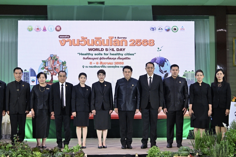 ผู้ตรวจราชการกระทรวงเกษตรและสหกรณ์ (นางสาวเสาวลักษณ์ ศุภกมลเสนีย์) เข้าร่วมงานแถลงข่าวการจัดงานวันดินโลก ประจำปี 2568 ภายใต้แนวคิด “Healthy soils for healthy cities ดินที่สมบูรณ์ สู่เมืองที่สมดุล เกื้อกูลชีวิต”ณ กรมพัฒนาที่ดิน เขตจตุจักร กรุงเทพมหานคร