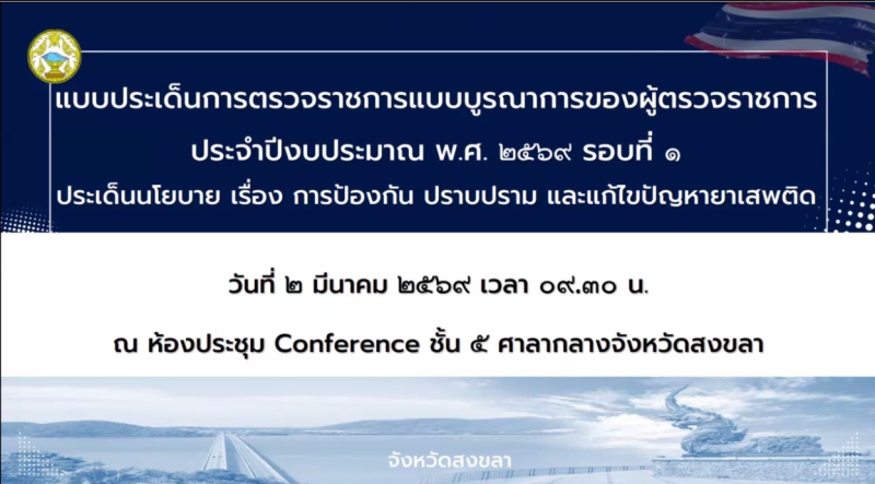 ผู้ตรวจราชการกระทรวงเกษตรและสหกรณ์ นายวิทยา แก้วมี เข้าร่วมประชุมการตรวจราชการแบบบูรณาการตามแผนการตรวจราชการแบบบูรณาการของผู้ตรวจราชการเขตตรวจราชการที่ 5 ประจำปีงบประมาณ 2569 รอบที่ 1 จังหวัดสงขลา