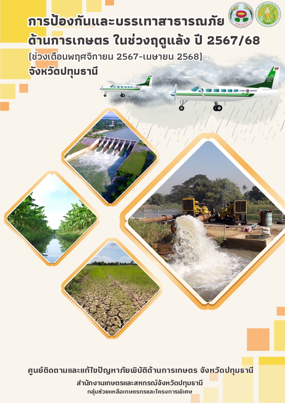การป้องกันและบรรเทาสาธารณภัยด้านการเกษตรในช่วงฤดูแล้ง ปี 2564/68 (ช่วงเดือนพฤศจิกายน 2567-เมษายน 2568) จังหวัดปทุมธานี