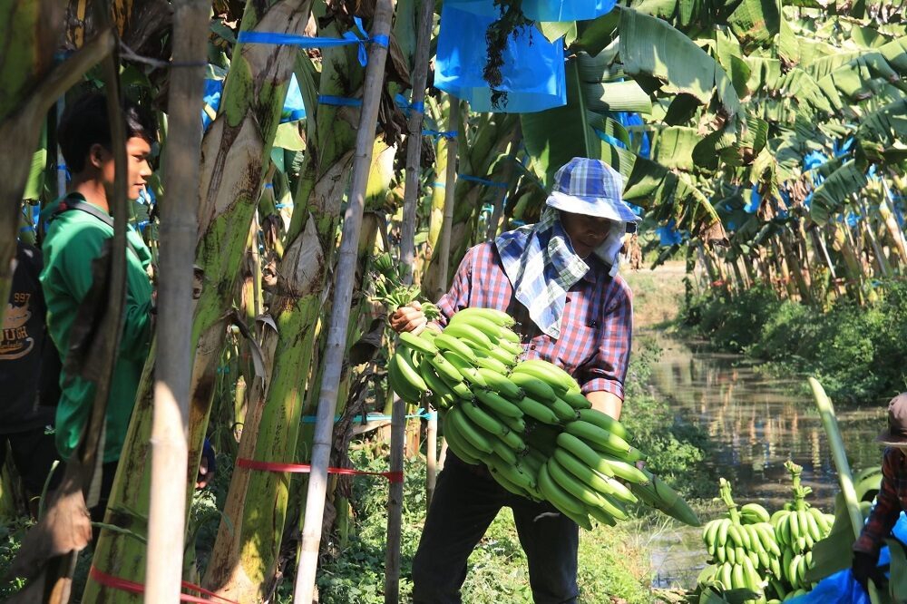 จากการติดตามสถานการณ์การผลิตกล้วยหอมทองของกลุ่มแปลงใหญ่กล้วยหอมทองตำบลนพรัตน์ อำเภอหนองเสือ จังหวัดปทุมธานี พบว่า นับเป็นกลุ่มที่มีการวางแผนการผลิตและการตลาดอย่างเป็นระบบ ผลผลิตผ่านการรับรองมาตรฐาน GAP และเป็นการผลิตแบบอินทรีย์ ส่งผลให้ผลผลิตมีคุณภาพ มาตรฐาน ตรงกับความต้องการตลาด ซึ่งทางกลุ่มเริ่มดำเนินการ เมื่อปี 2558 ปัจจุบันมีพื้นที่ปลูกกล้วยหอมทองที่ขึ้นทะเบียนกับกรมส่งเสริมการเกษตร รวม 1,500 ไร่ มีเกษตรกรสมาชิก 30 ราย โดยมี นายนุกุล นามปราศัย เป็นประธานแปลงใหญ่ การผลิตของกลุ่ม ปี 2565 พบว่า เกษตรกรมีพื้นที่เพาะปลูกตั้งแต่ 10 ไร่ ไปจนถึง 100 ไร่ โดยในพื้นที่ 1 ไร่ สามารถปลูกได้ประมาณ 300 ต้น มีต้นทุนการผลิตเฉลี่ย 30,000 บาท/ไร่/ปี ระยะเวลาเพาะปลูกจนถึงเก็บเกี่ยว 7-8 เดือน ให้ผลผลิตเฉลี่ย 2,365 กิโลกรัม/ไร่/ปี ผลตอบแทนเฉลี่ย 44,200 บาท/ไร่/ปี คิดเป็นผลตอบแทนสุทธิ (กำไร) เฉลี่ย 14,200 บาท/ไร่/ปี ทั้งนี้ หากคิดเป็นผลตอบแทนของทั้งกลุ่มจะได้กำไร 21,300,000 บาท/ปี ราคาที่เกษตรกรขายได้เฉลี่ยทั้งปี 2565 (ราคา ณ ไร่นา) โดยจำหน่ายแบบเครือ แบ่งเป็น 2 เกรด คือ กล้วยที่ได้เกรด (น้ำหนัก 8-9 กิโลกรัม/เครือ หรือ ประมาณ 6-7 หวี/เครือ) ราคาอยู่ที่ 150-200 บาท/เครือ และกล้วยตกเกรด (น้อยกว่า 6 หวี/เครือ) จะขายเหมารวม 3 เครือ ราคาอยู่ที่ 150-200 บาท ส่วนถ้าเป็นช่วงเทศกาล ราคาอยู่ที่เครือละ 300 บาท ซึ่งจากการพัฒนาอย่างต่อเนื่องของกลุ่ม ทำให้ผลผลิตเป็นที่ยอมรับของตลาดทั้งในด้านคุณภาพและมาตรฐาน ประกอบกับกลุ่มมีการวางแผนการผลิตให้มีผลผลิตออกสู่ตลาดอย่างต่อเนื่อง ทำให้ปัจจุบันผลผลิตกล้วยหอมของกลุ่มมีตลาดจำหน่ายภายในประเทศได้ทั้งหมด โดยผลผลิตส่วนใหญ่ ร้อยละ 70 จำหน่ายให้พ่อค้าผู้รวบรวม ซึ่งจะเข้ามารับซื้อผลผลิตทุกสัปดาห์ ส่วนผลผลิต ร้อยละ 30 ส่งจำหน่ายให้กับพ่อค้าผู้รวบรวมเพื่อส่งต่อให้กับตลาด Modern Trade และ Seven Eleven