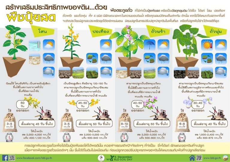 6. ช่วยในการควบคุม ปราบหรือตัดวงจรวัชพืชบางชนิดได้เป็นอย่างดี พืชปุ๋ยสดที่แนะนำเจริญเติบโตเร็ว