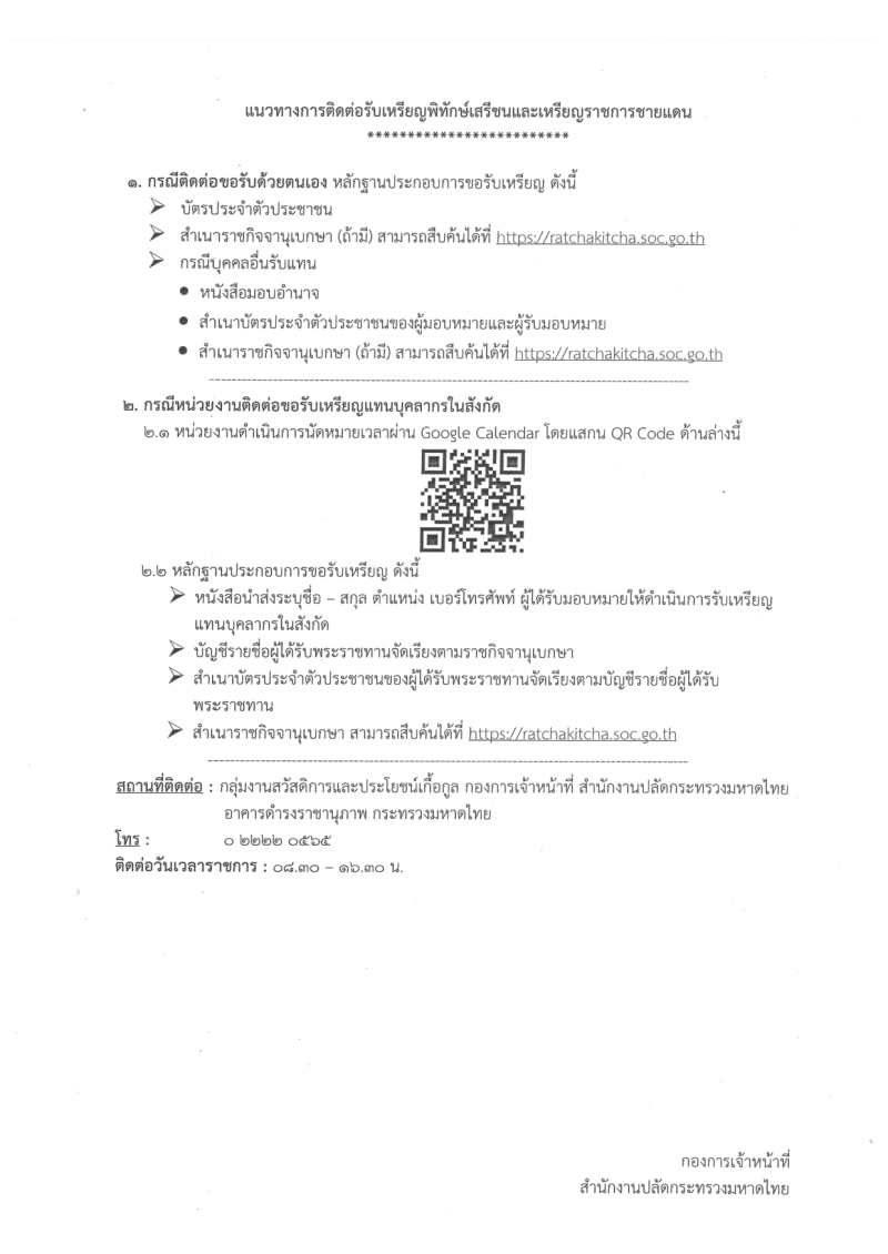 ประชาสัมพันธ์ ให้ผู้ซึ่งได้รับพระราชทานเหรียญพิทักษ์เสรีชน และเหรียญราชการชายแดน รวมทั้งหน่วยงานทหารและตำรวจ ในพื้นที่ราบ และติดต่อขอรับเหรียญพิทักษ์เสรีชน และเหรียญราชการชายแดน ได้ที่กลุ่มสวัสดิการและประโยชน์เกื้อกูล กองการเจ้าหน้าที่ สำนักงานปลัดกระทรวงมหาดไทย อาคารดำรงราชานุภาพ กระทรวงมหาดไทย หมายเลขโทรศัพท์ 02221 0565 หรือรายละเอียดตามเอกสารที่แนบ
