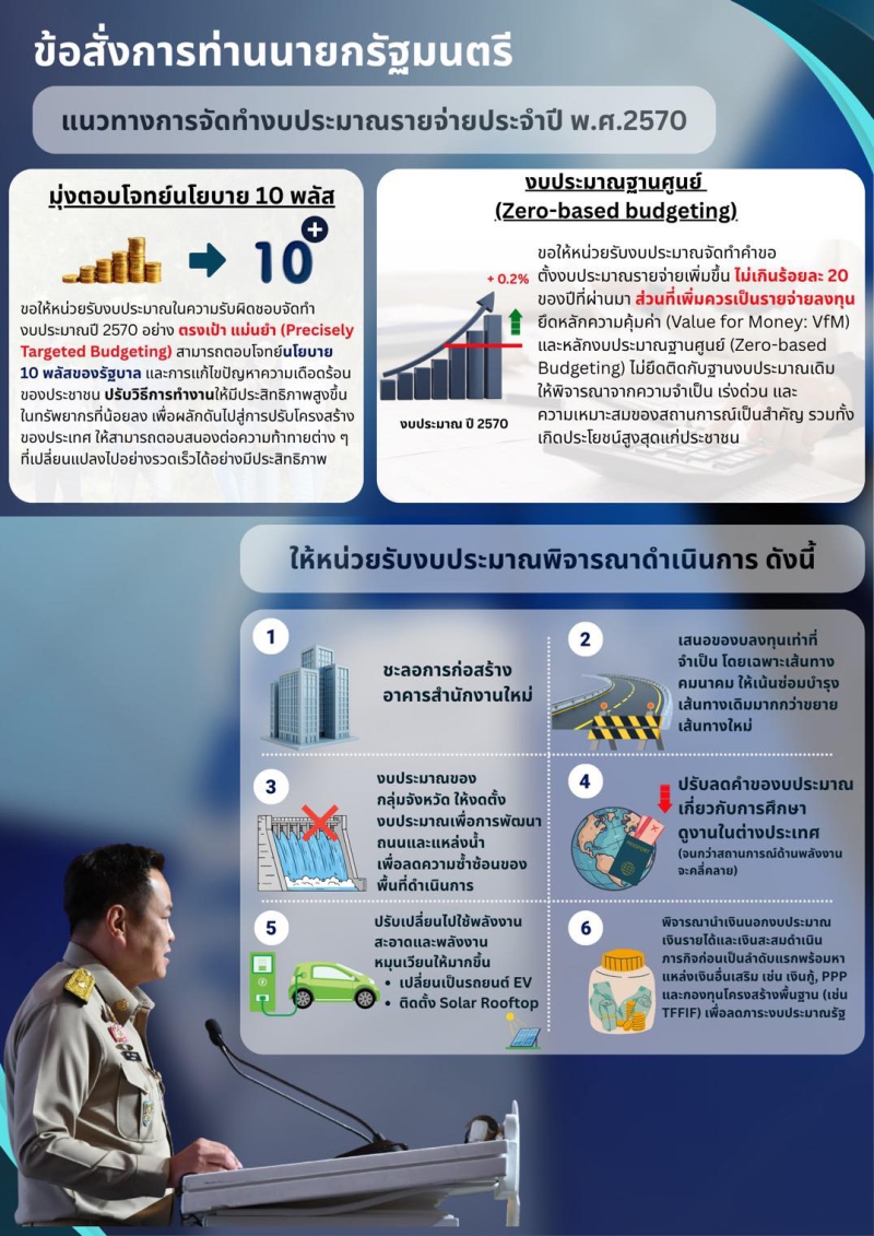 ข้อสั่งการท่านนายกรัฐมนตรี แนวทางการจัดทำงบประมาณรายจ่ายประจำปี พ.ศ.2570