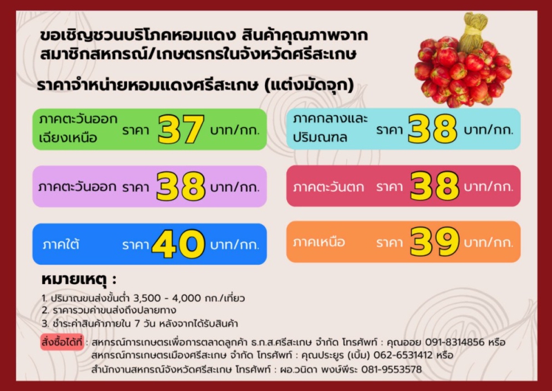 ราคาจำหน่ายหอมแดงศรีสะเกษ