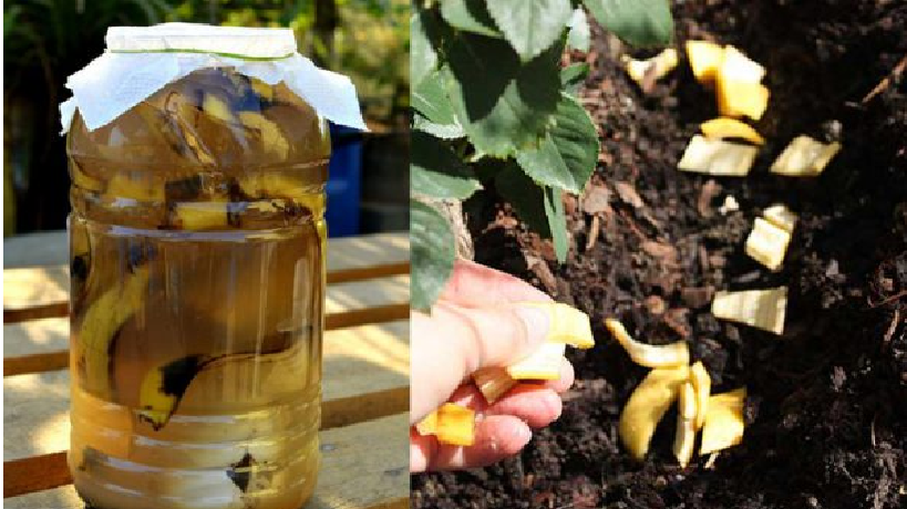 เปลือกกล้วยก็มีประโยชน์ น้ำหมักเปลือกกล้วย นำเปลือกกล้วยมาหมักไว้ในน้ำเปล่า ทิ้งไว้ 7 วัน(สังเกตว่าสีน้ำที่หมักไว้เปลี่ยนไป ออกเหลือง ๆ คล้าย ๆ สีเปลือกกล้วย เป็นอันว่าใช้ได้) แล้วนำไปรดต้นไม้ 1 ครั้ง/สัปดาห์ หากอยากให้เห็นผลดียิ่งขึ้น ให้หั่นเปลือกกล้วยเป็นชิ้นเล็ก ๆ แล้วนำไปโรยรอบ ๆ โคนต้นด้วย