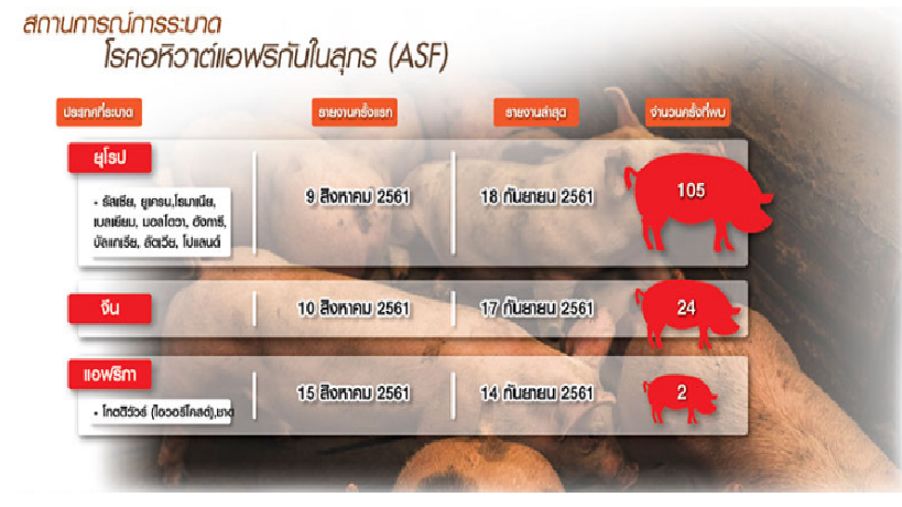 การแพร่ระบาดอย่างรวดเร็วของโรคอหิวาต์แอฟริกันในสุกร (African Swine Fever หรือ ASF) ที่กำลังกระจายเกือบจะทั่วยุโรปตะวันตก ยุโรปตะวันออก จีน และรัสเซียภายในเวลาไม่กี่วัน ได้สร้างความตื่นตระหนกให้ผู้คนในแวดวงอุตสาหกรรมการเลี้ยงหมูของไทยมิใช่น้อย เนื่องจากเป็นโรคที่มีความรุนแรงมากในหมู