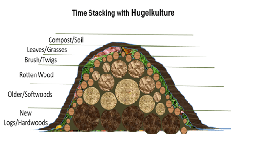 วิธีการก็คือ ใช้ท่อนซุงหรือพวกกิ่งไม้ เศษใบไม้ใบหญ้าต่าง ๆ มากองสุมเป็นฐานและก่อเป็นแปลงผักให้สูงขึ้นเพื่อใช้ในการปลูกผักหรือทำประโยชน์ต่าง ๆ ด้านการเกษตรอินทรีย์ ซึ่งประโยชน์ของการปลูกผักโดยวิธีนี้ คือ พืชผักที่เราปลูกนั้นจะได้รับสารอาหารจากกิ่งไม้เศษไม้ที่นำมากองสุม ๆ เอาไว้และถูกย่อยสลายด้วยธรรมชาติ เป็นการช่วยให้อาหารและความชื้นตามธรรมชาติ โดยแปลงเกษตรแบบนี้แทบจะไม่ต้องรดน้ำเลย หรือใช้น้ำน้อยมากในการรดน้ำให้พืชผักประสิทธิภาพที่จะได้สำหรับการปลูกผักบนคันดิน หรือการทำคันดินปลูกผักด้วยวิธี Hugelkultur นี้คือเราจะต้องทำให้แปลงผักกองสุมนี้ให้สูงและกว้าง ยิ่งสูงมาก กว้างมาก ก็ยิ่งไม่ต้องเปลืองน้ำกันมากแต่ขอแนะนำให้เอาไม้หรือซากพืชที่สามารถย่อยสลายได้ในระยะเวลาสั้น ๆ นะครับ หากนำไม้สดมากองสุม ๆ กันอาจต้องใช้เวลาเป็นปีเพื่อจะได้แปลงผักแบบนี้ แต่รับรองว่า ทำแล้วจะได้แปลงผักที่ไม่ต้องรดน้ำชุ่มไปอีกนานเลยทีเดียว ข้อมูลระบุว่าการทำแปลง Hugelkultur 1 ครั้งสามารถใช้งานได้ยาวนานเกิน 10 ปี เอาไปลองกันเลย ผู้เขียนคิดว่าหากนำวิธีนี้มาจัดสวนล่ะก็ สวนจะอยู่กับเราไปอีกหลายสิบปีเลยทีเดียว ที่สำคัญไม่ต้องรดน้ำพรวนดินบ่อย ๆ ดีมาก ๆ เลย
