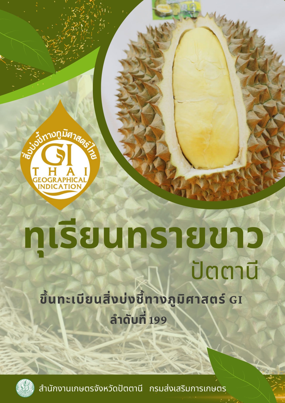 นายจำเดิม ทองคำ เกษตรจังหวัดปัตตานี เปิดเผยว่า ตามที่กรมทรัพย์สินทางปัญญาได้ประกาศขึ้นทะเบียนทุเรียนทรายขาว (ทุเรียนหมอนทอง) สินค้าสิ่งบ่งชี้ทางภูมิศาสตร์ (GI) ลำดับที่ 199 มีผลตั้งแต่วันยื่นขอขึ้นทะเบียน 4 เมษายน 2560 ซึ่งก่อนหน้านี้ลูกหยียะรังและส้มโอปูโกของจังหวัดปัตตานี ก็ได้มีการขึ้นทะเบียน GI ส่งผลให้มีการสร้างมาตรฐานของสินค้าภูมิปัญญาท้องถิ่น สามารถเพิ่มมูลค่าสินค้า ทำให้พี่น้องเกษตรกรมีรายได้เพิ่มมากขึ้น