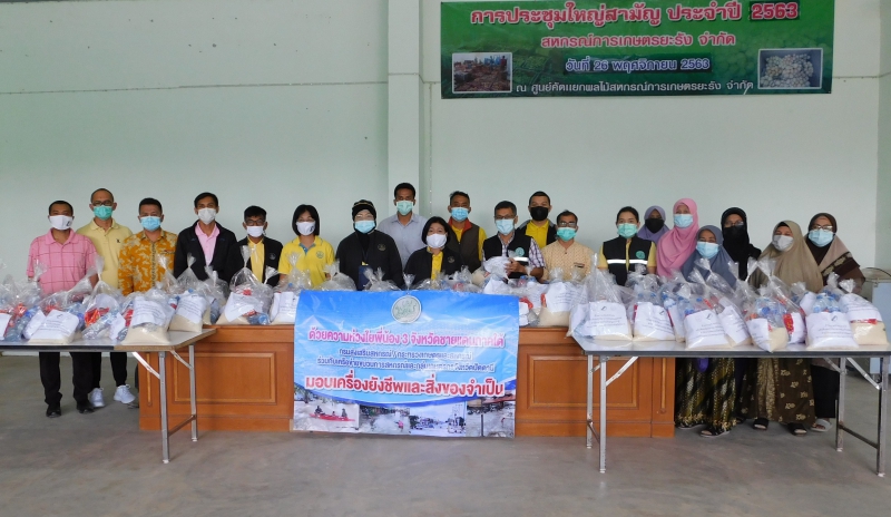 วันนี้ (12 มกราคม 2564) เวลา 09.00 น สำนักงานเกษตรและสหกรณ์จังหวัดปัตตานี เข้าร่วมกับสำนักงานสหกรณ์จังหวัดปัตตานี ลงพื้นที่มอบอาหาร น้ำดื่ม ถุงยังชีพ และสิ่งของจำเป็น ซึ่งได้รับการสนับสนุนงบประมาณจากกรมส่งเสริมสหกรณ์ ให้แก่สมาชิกสหกรณ์ในอำเภอหนองจิก และอำเภอยะรัง ที่ได้รับผลกระทบจากสถานการณ์น้ำท่วม จำนวน 250 ชุด โดยมีนางรอซนานี สันหมุด ผู้ตรวจราชการกรมส่งเสริมสหกรณ์ เขตตรวจราชการที่ 6,7 นายฉลาด แก้วขาว เกษตรและสหกรณ์จังหวัดปัตตานี นางสาวโสภิดา ศรัทธารัตน์ นักวิชาการสหกรณ์ชำนาญการพิเศษ รักษาราชการแทนสหกรณ์จังหวัดปัตตานี นางสาวกรรณิการ์ จันทร์ทองแท้ หัวหน้ากลุ่มสารสนเทศการเกษตร และผู้แทนหน่วยงานสังกัดกระทรวงเกษตรและสหกรณ์ ณ สหกรณ์การเกษตรหนองจิก จำกัด, สหกรณ์การเกษตรทุ่งลิปะสะโง จำกัด, สหกรณ์ อรบ.ปัตตานี จำกัด, สหกรณ์ปาล์มน้ำมันปัตตานี จำกัด, สหกรณ์มหาวิทยาลัยฟาฏอนี จำกัด และสหกรณ์การเกษตรยะรัง จำกัด