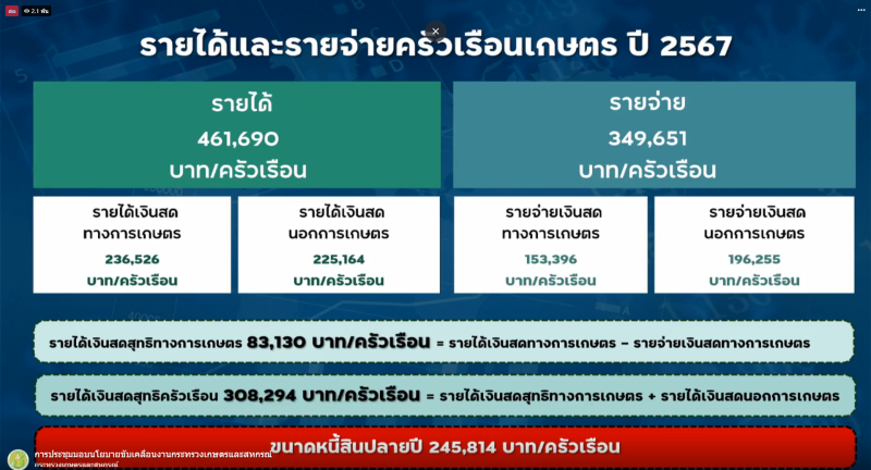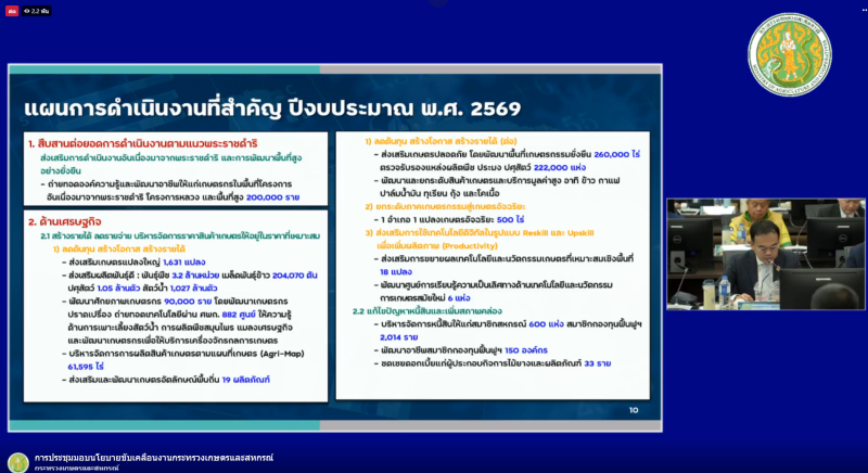 1. สรุปภาพรวมการดำเนินงานกระทรวงเกษตรและสหกรณ์ โดย เลขาธิการสำนักงานเศรษฐกิจการเกษตร