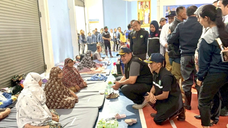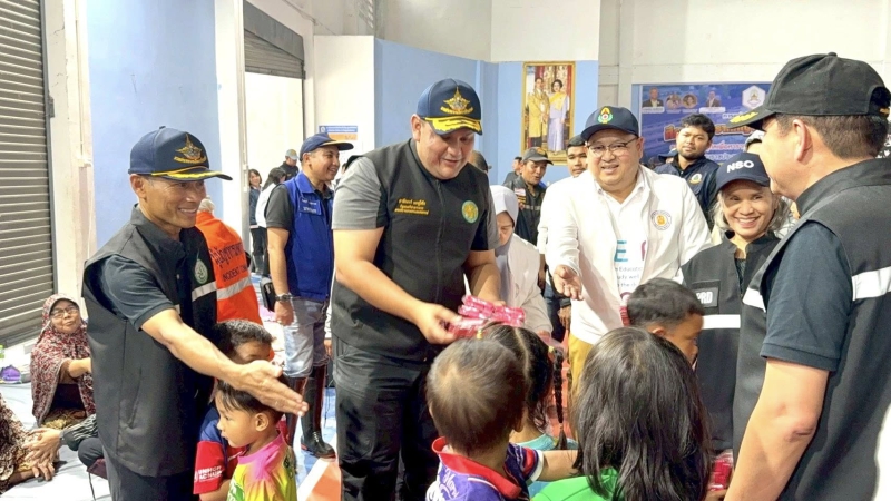 จุดแรก ลงพื้นที่พบปะช่วยเหลือผู้ประสบอุทกภัยในศูนย์พักพิง มอบถุงยังชีพ พร้อมเน้นย้ำการลงทะเบียนเยียวยาตามมาตราการของรัฐ ณ โรงเรียนราชประชานุเคราะห์ 40 (จังหวัดปัตตานี) ต.รูสะมิแล อ.เมือง จ.ปัตตานี