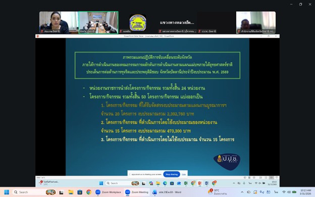 วันอังคาร ที่ 31 มีนาคม 2569 เวลา 09.30 น. นายฉลาด แก้วขาว เกษตรและสหกรณ์จังหวัดปัตตานี มอบหมายให้นางสาวกรรณิการ์ จันทร์ ทองแท้ หัวหน้ากลุ่มยุทธศาสตร์พัฒนาการเกษตร เข้าร่วมประชุมคณะกรรมการผลักดันการดำเนินงานตามแผนแม่บทภายใต้ยุทธศาสตร์ชาติ ประเด็นการต่อต้านการทุจริตและประพฤติมิชอบ จังหวัดปัตตานี ครั้งที่ 2/2569 ณ ห้องสำนักงานเกษตรและสหกรณ์จังหวัดปัตตานี ชั้น 2 อาคาร 1 ศาลากลางจังหวัดปัตตานี โดยมีว่าที่ร้อยตรี จรัสย์ ศิริวัลลภ รองผู้ว่าราชการจังหวัดปัตตานี เป็นประธานการประชุม ผ่านระบบ Zoom Meeting
