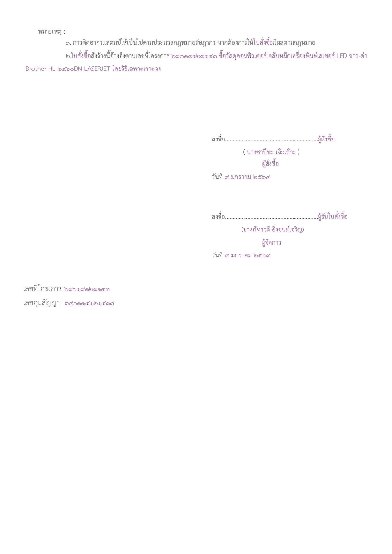 สรุปผลการสั่งซื้อตลับหมึกเครื่องพิมพ์เลเซอร์ LED ขาว-ดำ Brother HL-2460DN LASERJET