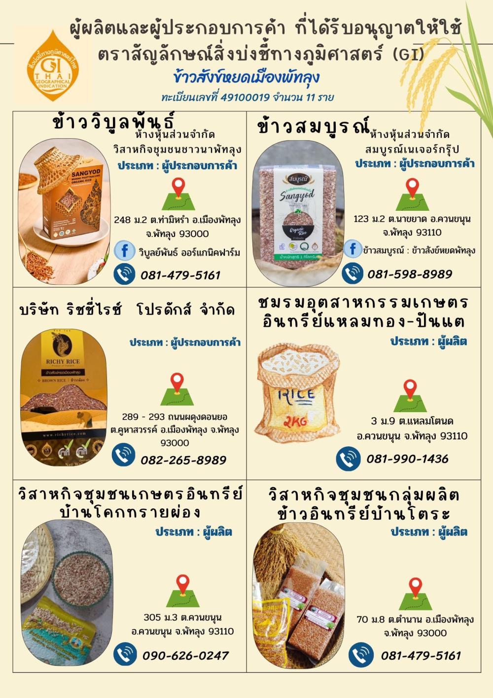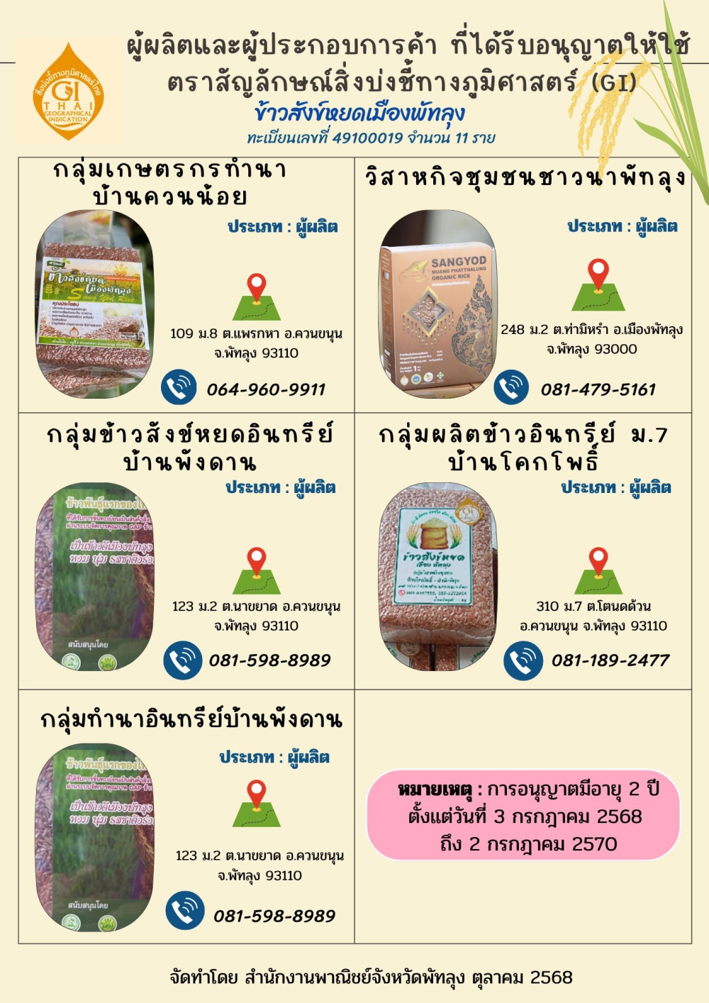 ผู้ที่ได้รับอนุญาตให้ใช้ตราสัญลักษณ์สิ่งบ่งชี้ทางภูมิศาสตร์ไทย "ข้าวสังข์หยดเมืองพัทลุง" ประจำปี 2568